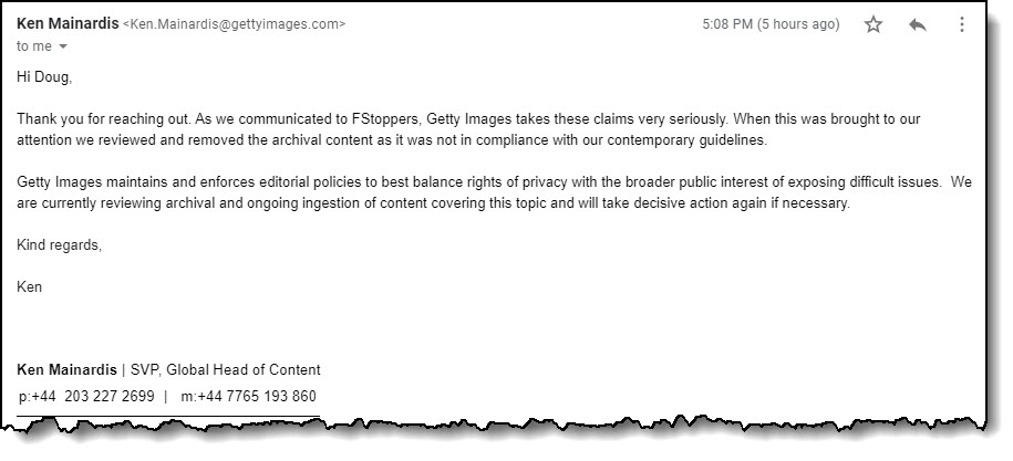 The article states that Getty has acknowledged the problem and has removed “some” from their site. Well excuse me, but that’s a cop-out, plain and simple. They need to remove ALL those photos and refuse to allow their photographers to ever add any more. Nothing less is acceptable.