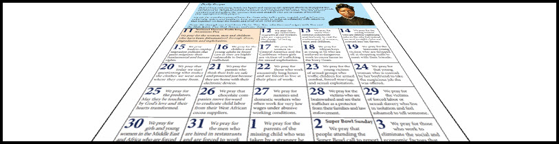 For this month, the Sisters of Saint Joseph of Orange, have prepared a calendar with a “prayer for each day” that could be offered up for victims of trafficking.